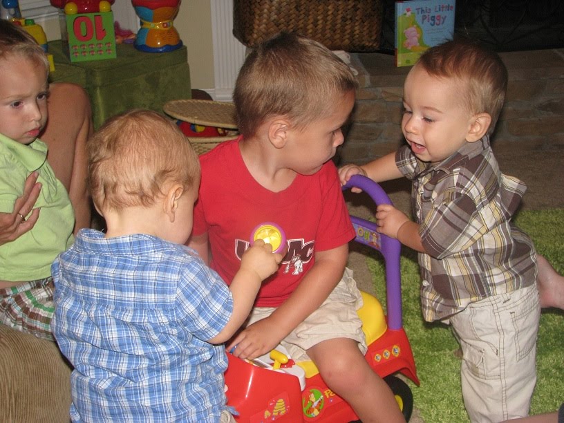 Jakie is running around the house like crazy. He is always a happy little boy. His dimples are amazing and smile contagious. He doesn't say a lot of words. Megan beat him in that department... but he engages... pays attention... and smiles all the time! I'm happy with all of that. He is a great napper! He goes right down... he takes a 2-3.5 hour nap during the day... and 11-12.5 hours at night. @ 18 months he still loves his paci ---morning- noon and night... but I don't mind. He will get rid of it when he wants to.
